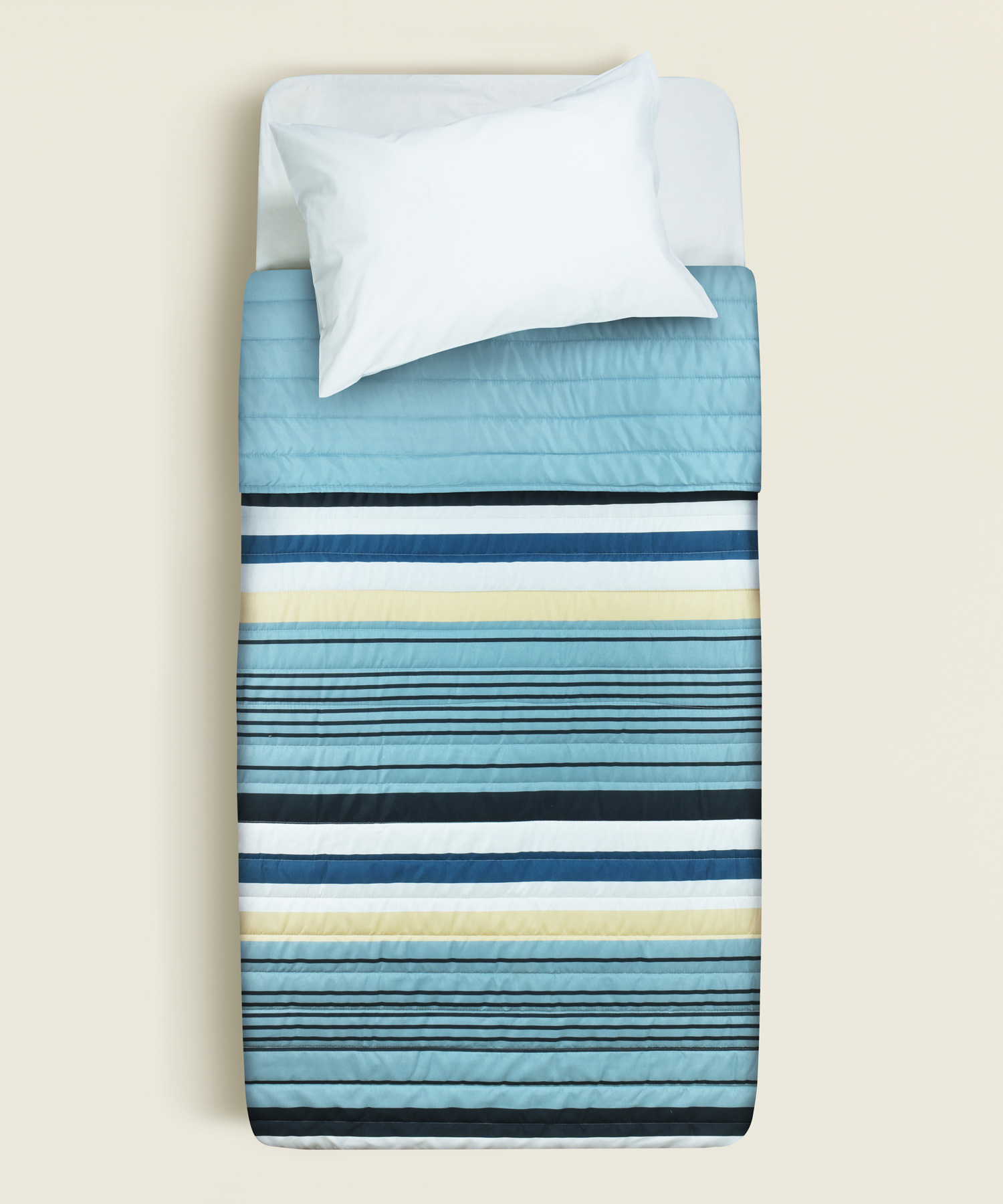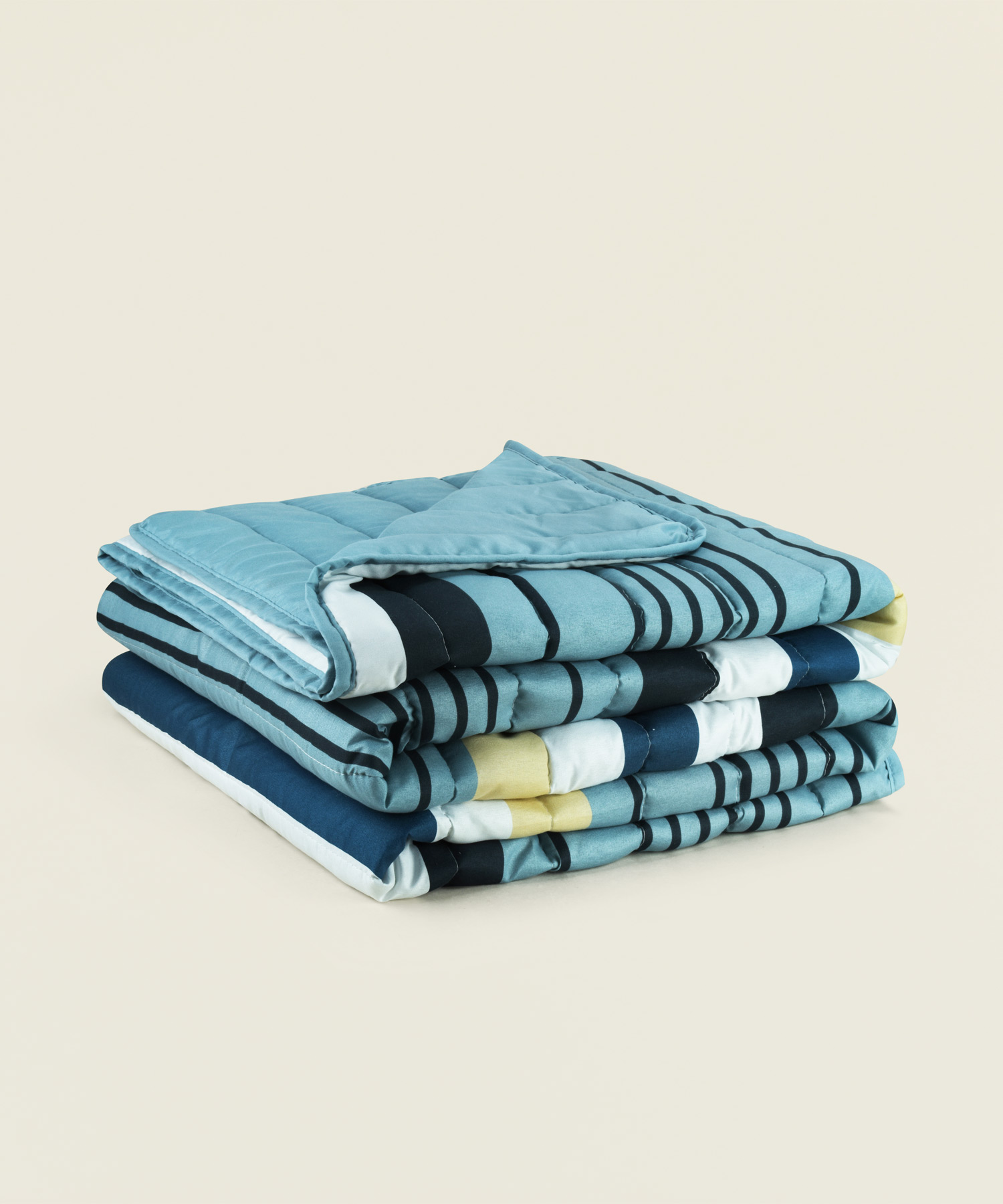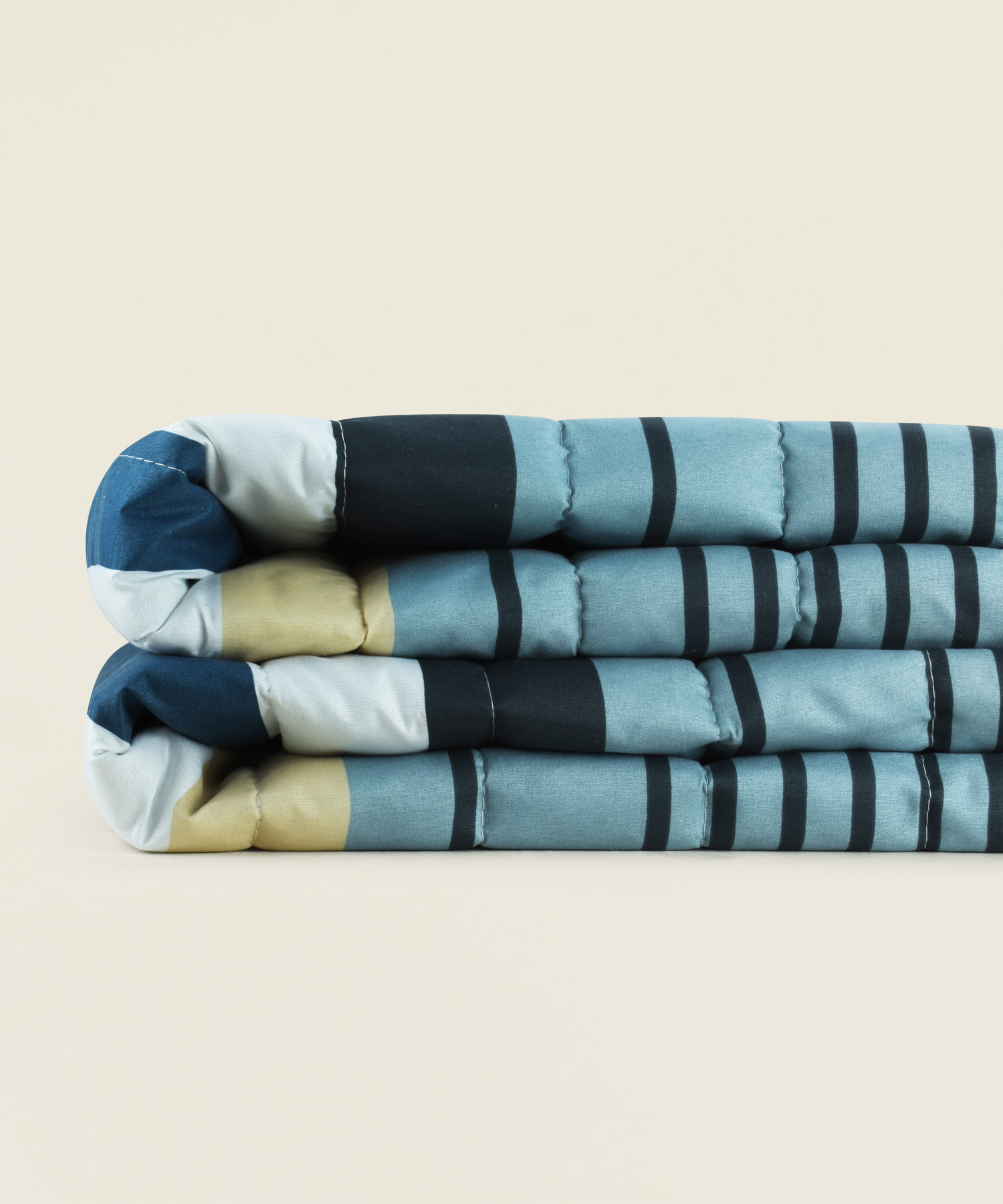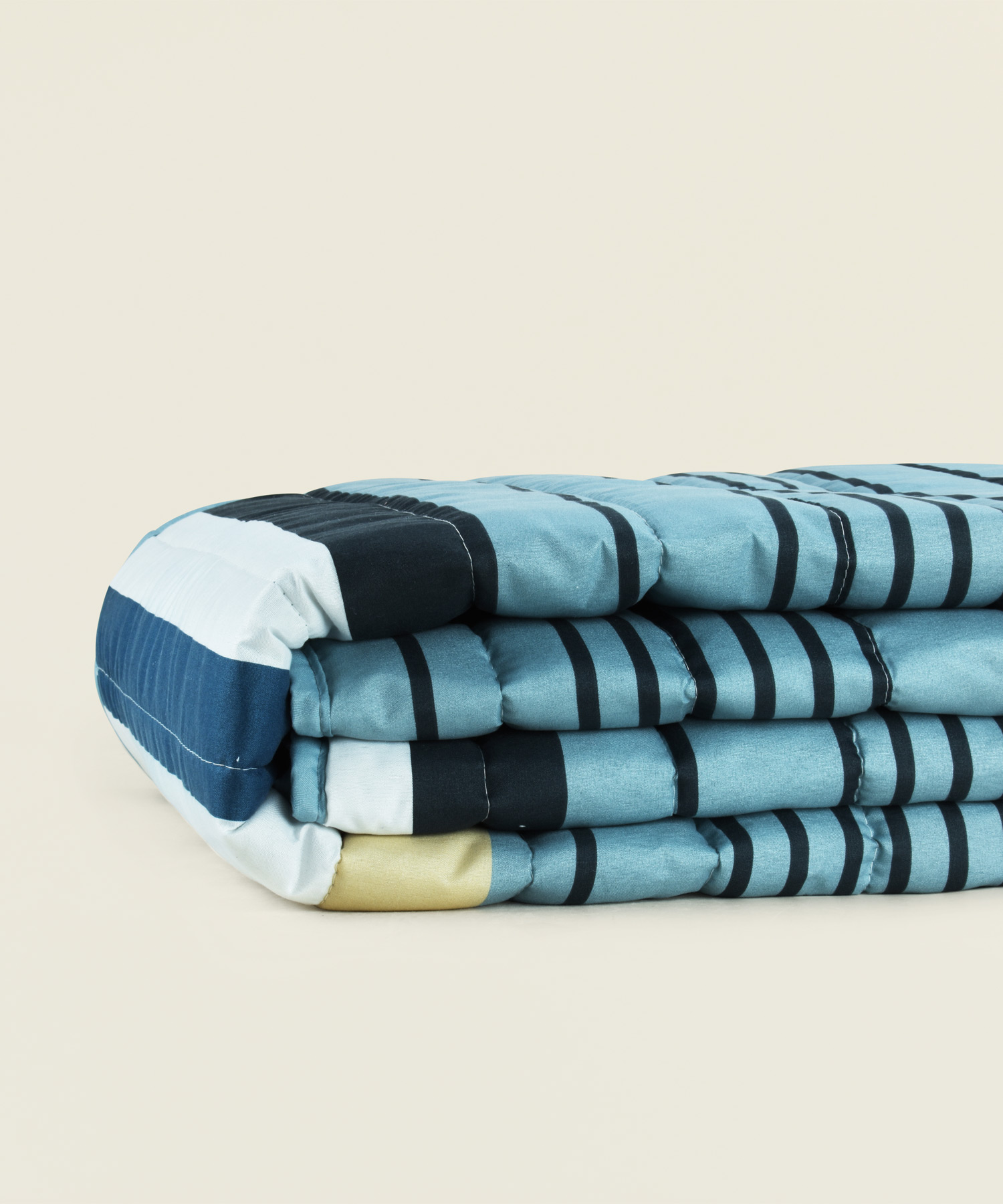 Ελαφρύ μονό πάπλωμα 160×240εκ. από μικροΐνες με σχέδιο μπλε ρίγες, ιδανικό για καθημερινή χρήση και άνετο ύπνο όλες τις εποχές.
