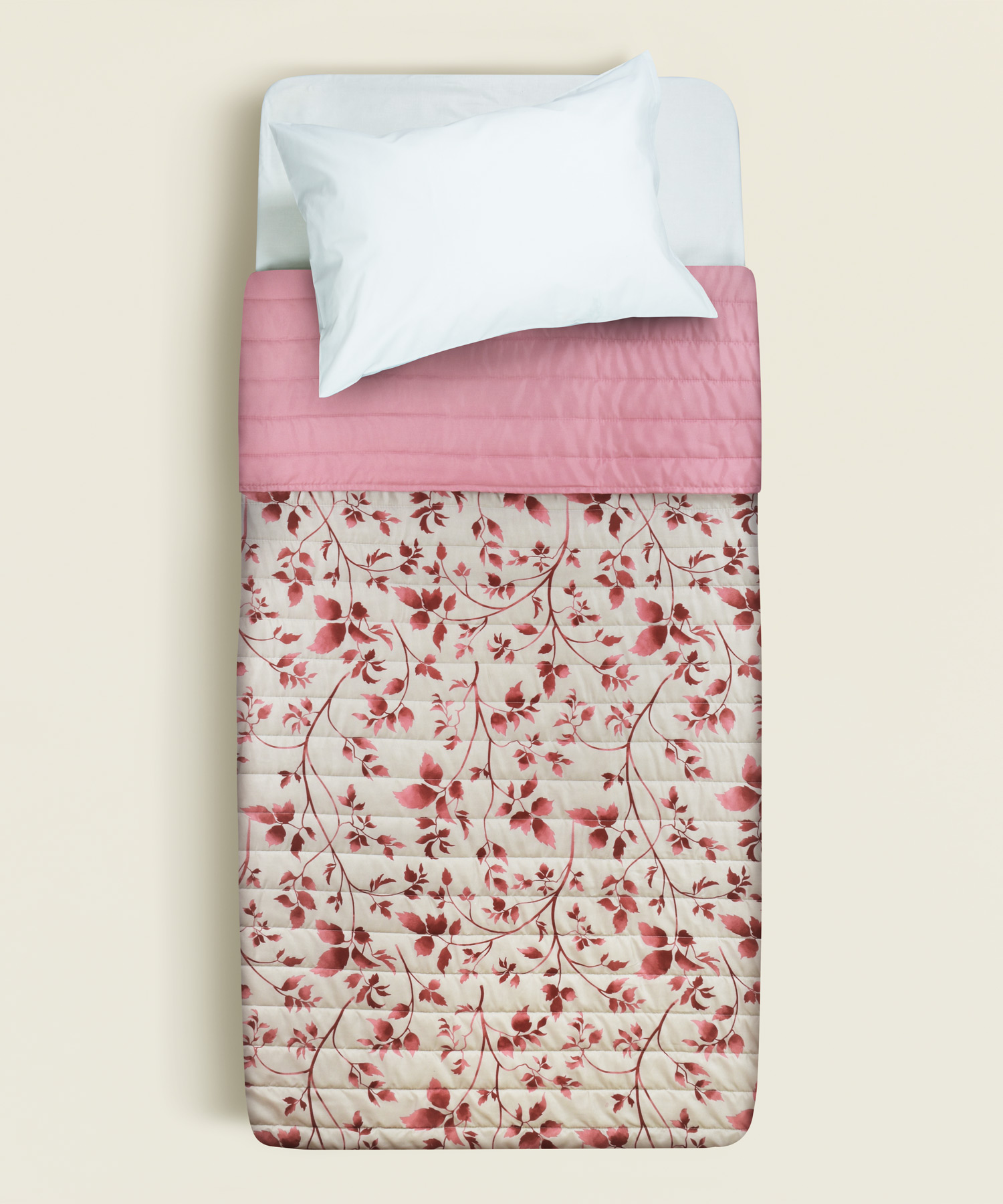 Ελαφρύ μονό πάπλωμα 160×240εκ. από μικροΐνες με σχέδιο σομόν φύλλα, ιδανικό για καθημερινή χρήση και άνετο ύπνο όλες τις εποχές.