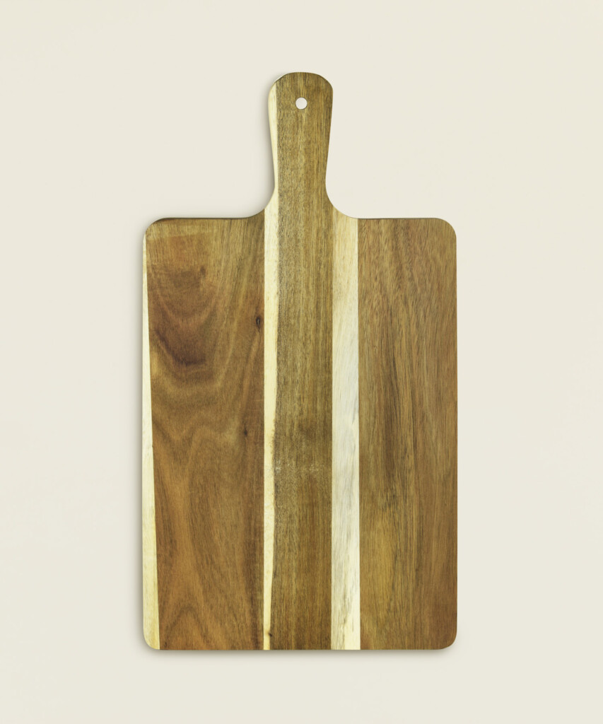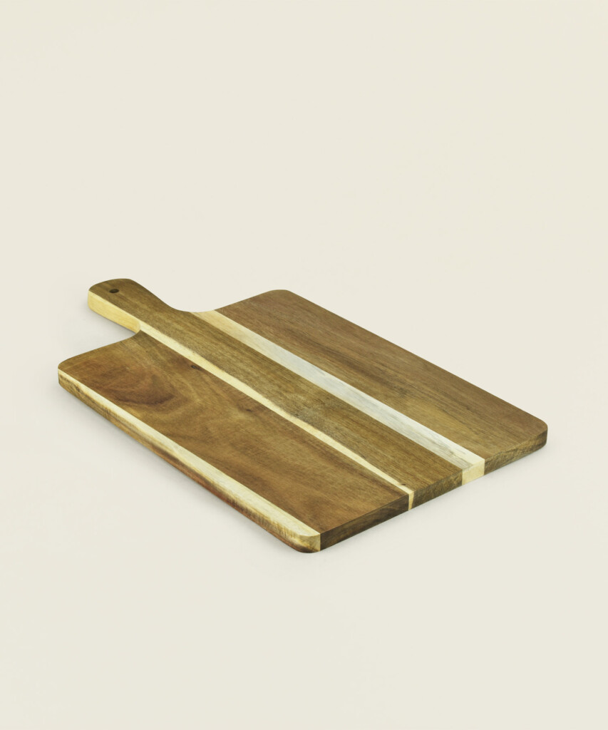 Ξύλο κοπής με εργονομική λαβή και τρύπα ανάρτησης, ιδανικό για καθημερινή προετοιμασία φαγητού. Η λεία επιφάνεια είναι κατάλληλη για κοπή ψωμιού, λαχανικών, τυριών και αλλαντικών, ενώ μπορεί να χρησιμοποιηθεί και ως δίσκος σερβιρίσματος.